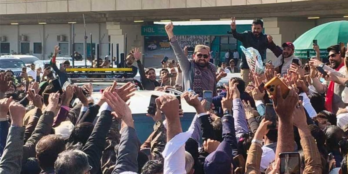 After leaving the airport, Suhail Afridi proceeded in a rally joined by party leaders and workers.