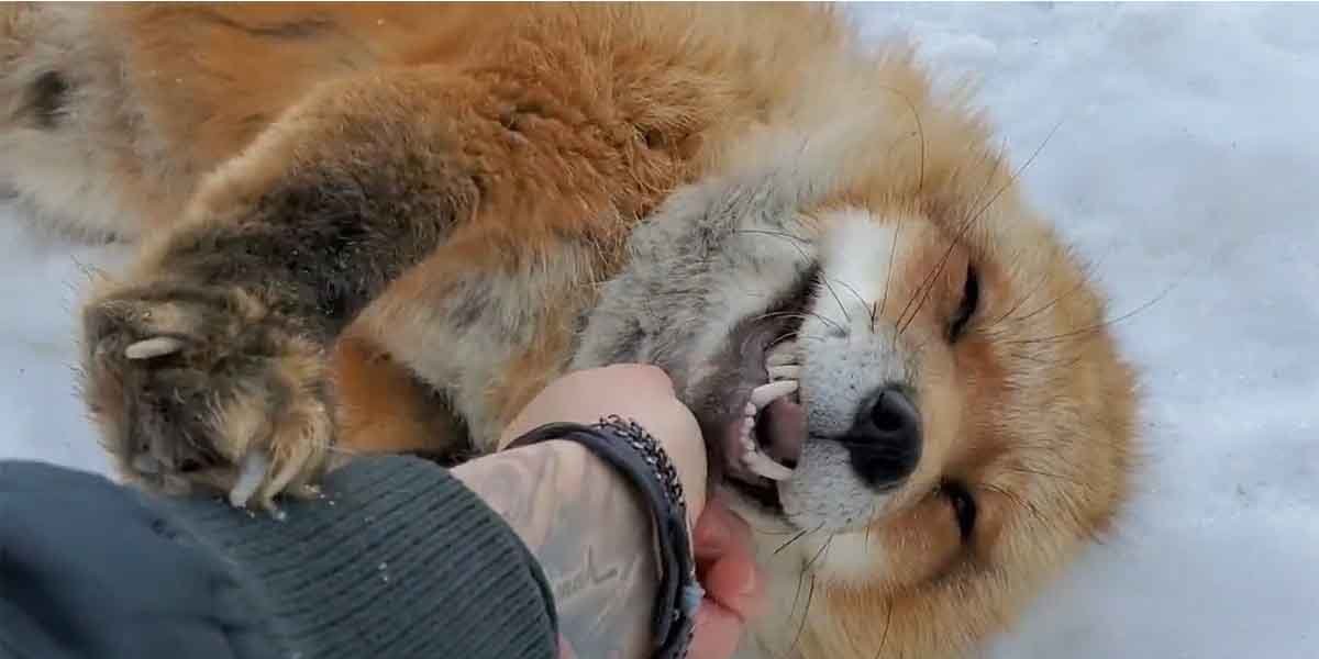 The clip, shows the man, who is somewhere in a forest. There’s snow and a fox’s neck has been tied by a rope. The fox cringes, tilts her head repeatedly in an attempt to free herself.