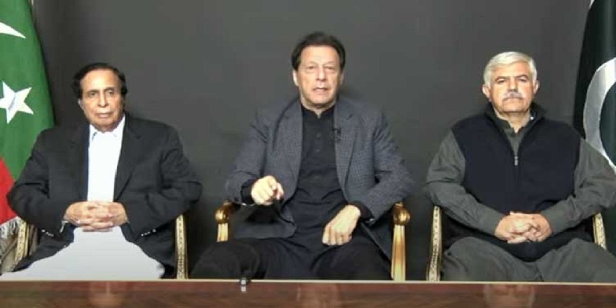 Imran Khan while addressing the PTI supporters via video link from his residence in Lahore’s Zaman Park flanked by the Punjab Chief Minister Chaudhry Pervez Elahi and Khyber Pakhtunkhwa CM Mahmood said that “I want to inform the people about why I decided to dissolve the two provincial assemblies.”